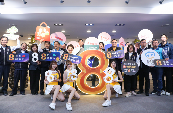 臺中市政府整合跨局處資源,推出大型城市行銷計畫「台中 Hi 8 全城開趴」,自去年12月啟動並延續至中台灣燈會,長達88天的活動期間串聯8大指標性慶典,成功帶動人潮、住宿與消費熱度。市府統計指出,跨年檔期結合大型演唱會與節慶活動,讓臺中觀光動能顯著升溫,旅宿住房率一度衝上9成,消費登錄活動短短10天即突破28億元。