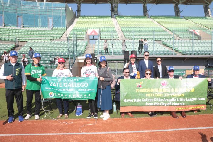 美國鳳凰城市長 Kate Gallego 致詞時指出,臺美雙方多年來在軍事與產業交流保持密切互動,今日友誼賽象徵雙城情誼延續,並提及星宇航空即將開航臺灣直飛鳳凰城,為兩地交流開啟新篇章。Gallego 市長也對臺南市的熱情款待表示感謝,並誠摯邀請市民前往鳳凰城參訪。