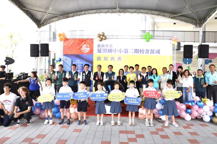 教育部國教署署長彭富源在致詞中表示,蓮潭國中小不僅擁有優質校園硬體設施,更具備豐富教育內涵,是功能健全且深受家長信賴的學校。他肯定台南市在黃偉哲市長帶領下積極爭取中央資源,並推動有助學生未來發展的創新政策,中央將持續與地方合作,為孩子打造幸福成長環境。