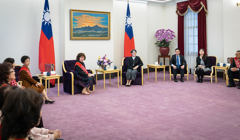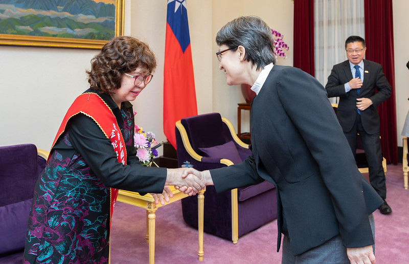 訪賓一行尚包括中華民國志願服務協會理事長藍高玉雲等,由衛生福利部次長呂建德陪同,前來總統府晉見副總統。
