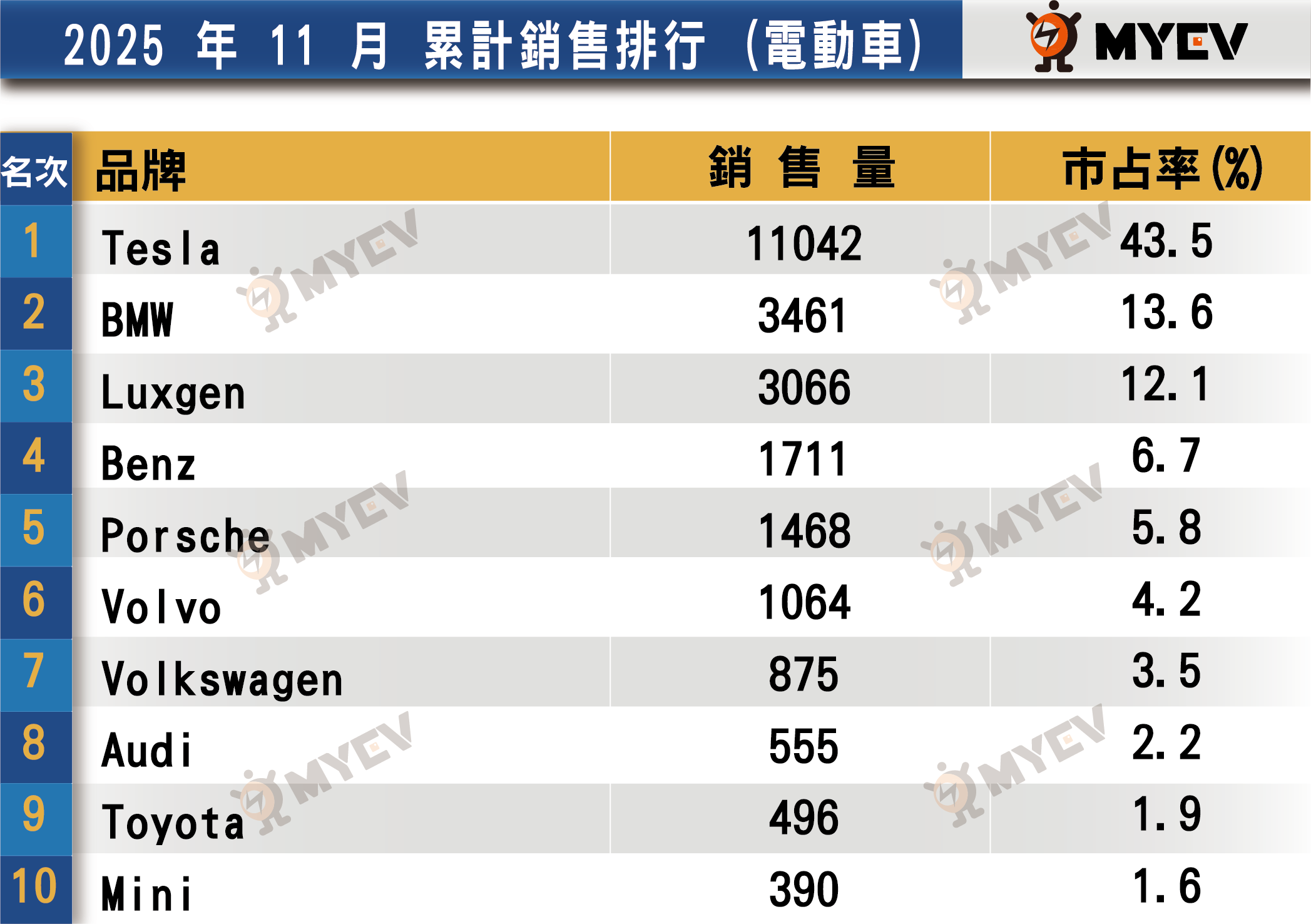 BMW電動車11月掛牌349輛,以iX1、iX、iX2帶動銷售;Porsche掛牌88輛,Hyundai掛牌42輛。
