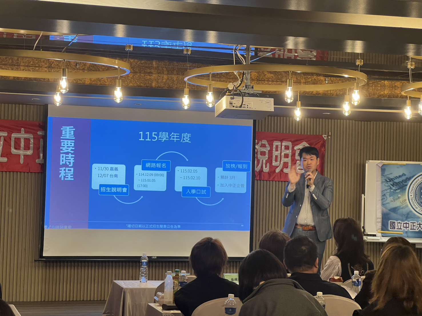 國立中正大學企業管理學系在職MBA於12月7日舉辦「中正大學企管系在職MBA臺南場招生說明會」,活動地點選定臺南桂田酒店,吸引眾多企業決策階層與專業經理人出席,現場互動熱烈,氣氛專業而高度聚焦。