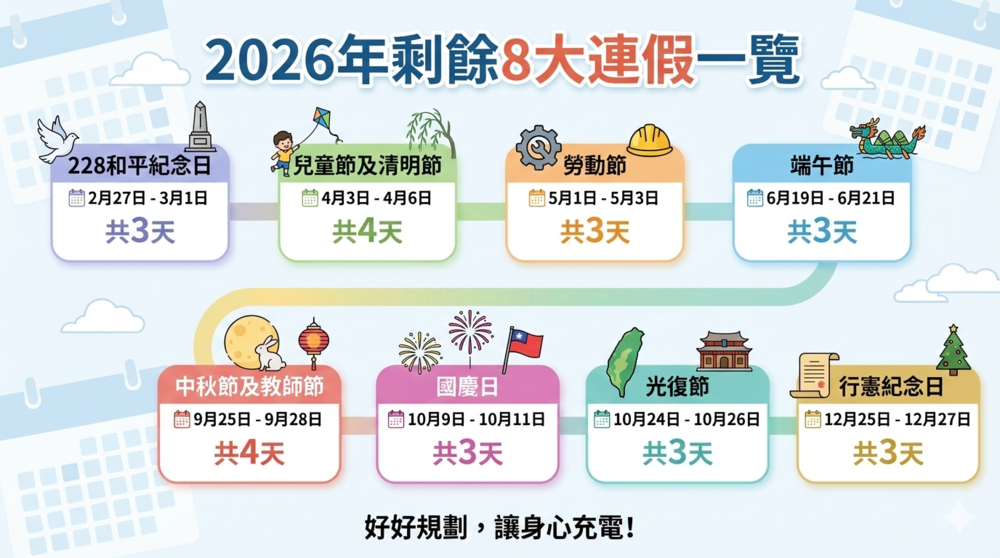 雖然春節連假即將結束,但2026年還有多個長假可以期待,民眾已開始討論後續旅遊計畫。