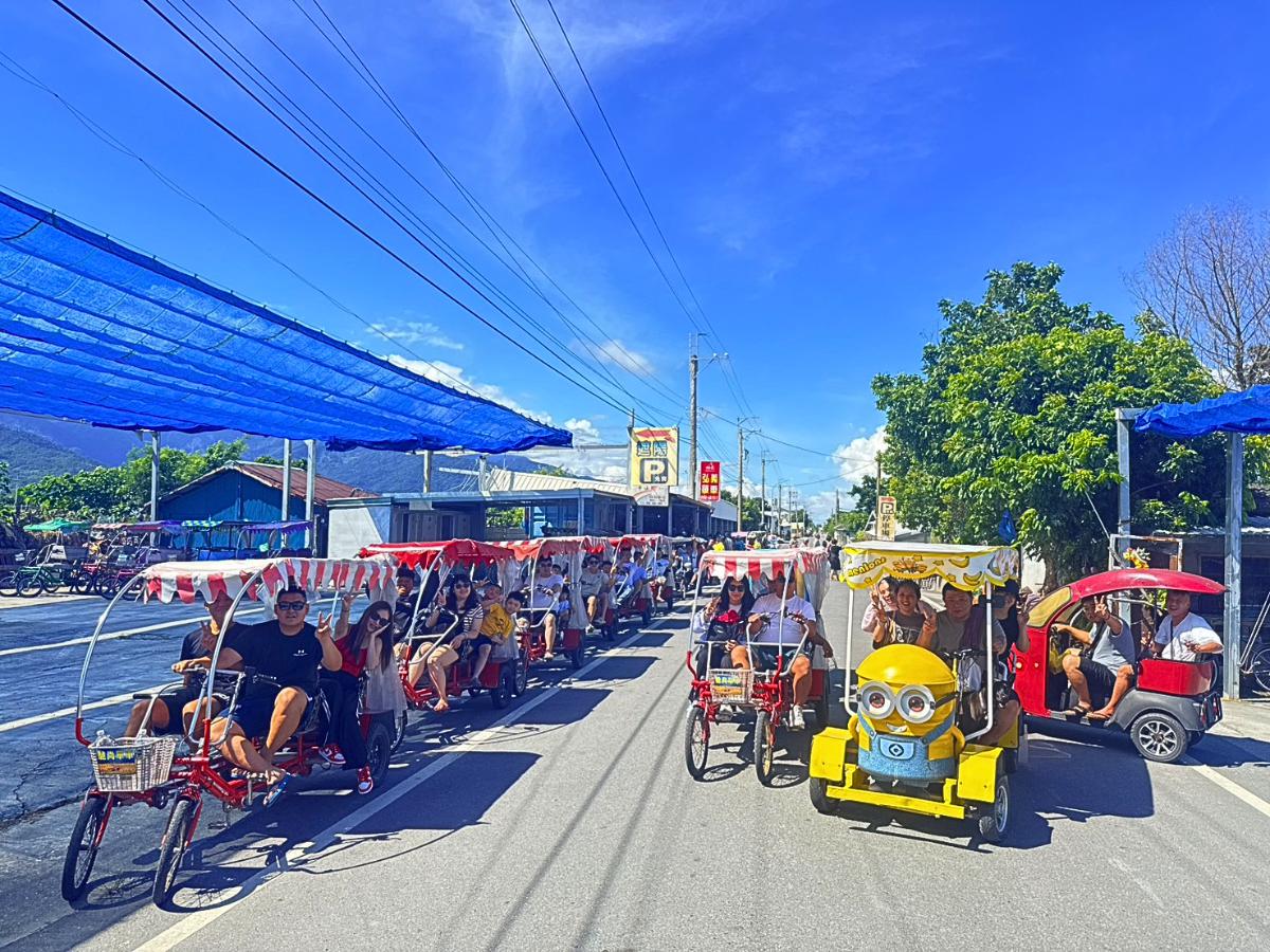 A:店內除一般腳踏車與電動車外,也提供較具特色的四人造型車款( 1200元),適合池上家庭旅遊單車租借時選擇。對重視旅遊氛圍、合照畫面與乘坐趣味的旅客來說,會是更有記憶點的體驗。