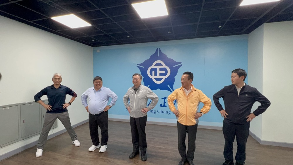 卓榮泰在中正大學體育中心主任廖俊儒說明下,了解場館營運及配套措施,並肯定校方積極響應國家政策、開放資源與社區共享。隨後,他在擔任運動教練的助理教授張博涵帶領下,體驗啞鈴肩推、下肢重量訓練及肩關節伸展運動等課程,實際感受規律訓練對健康促進的重要性。